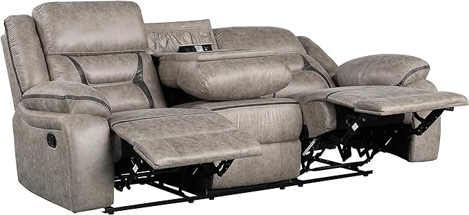 Elkton Manual Motion Reclining Sofa and Loveseat with Storage Console, Taupe