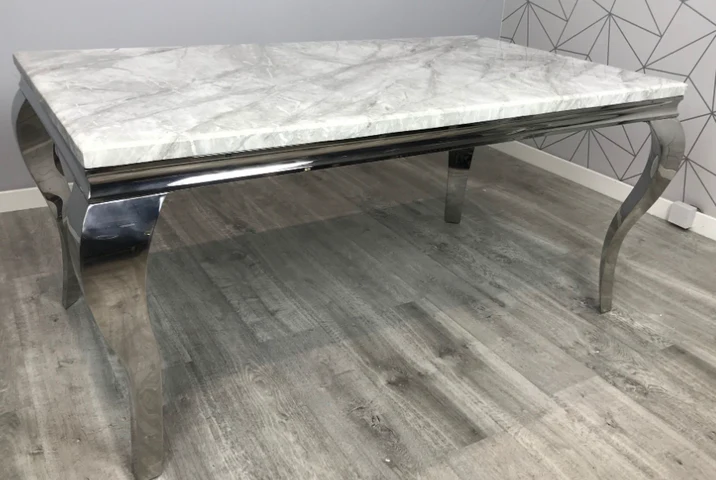 Centre your dining experience around this striking piece of contemporary Parisian Chic, the Louis dining table is the epitome of luxury and minimalist glamour. Available in both a glass or marble top onto of a sturdy base comprising of four stainless steel curved legs, this dining table comes in a range of colours and sizes to fit your home.
